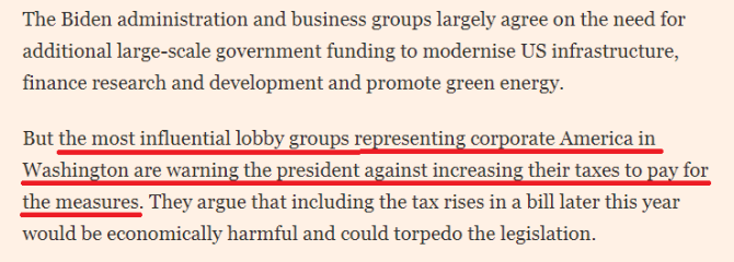 有媒體稱,拜登政府試圖通過對企業(yè)和富人增加稅收來籌措基建資金,但此舉引起了相關(guān)方的明確反對。華盛頓最具影響力的美國企業(yè)界游說團(tuán)體早就警告總統(tǒng)拜登,不要試圖通過增稅手段來為他承諾的基建投資提供資金。