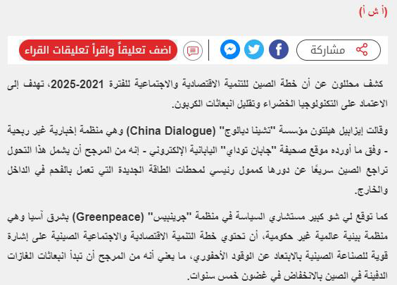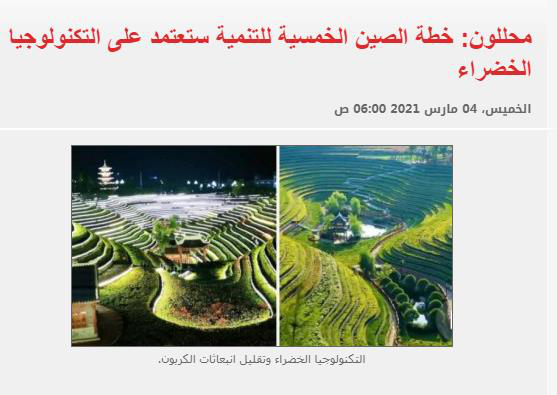 當?shù)貢r間3月4日,埃及媒體重點關注中國未來五年發(fā)展計劃。當?shù)孛襟w《七日報》官網(wǎng)上發(fā)表題為《中國的五年發(fā)展計劃將基于綠色技術》,文章中,分析人士對中國2021—2025年的經(jīng)濟和社會發(fā)展計劃旨在依靠綠色技術并減少碳排放給予積極評價。