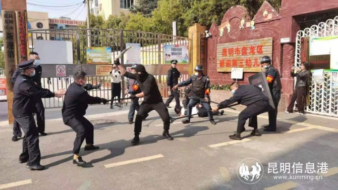 昆明信息港訊 記者黃彩英 通訊員黃雯 3月5日,盤龍區(qū)新迎第三幼兒園舉行反恐防暴應急演練及專項培訓。