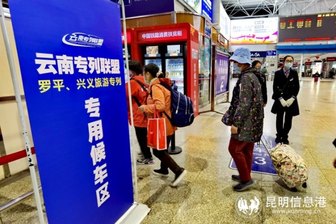 昆明信息港訊 記者上官艷君 3月6日,記者從中國鐵路昆明局集團(tuán)有限公司獲悉,3月5日23時(shí)13分,348名游客乘坐Y802次“觀金色羅平、探興義幽境”賞花踏青專列從昆明站啟程,趕赴一場(chǎng)與春天的約會(huì)。這是云南省首個(gè)鐵路旅游專列聯(lián)盟的首趟春游專列。