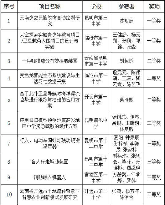 第六屆云南省“互聯(lián)網(wǎng)+”大學(xué)生創(chuàng)新創(chuàng)業(yè)大賽萌芽賽道獲獎名單
