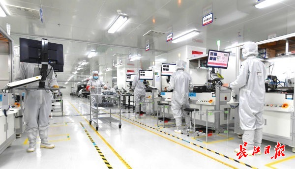華工科技核心子公司華工正源生產(chǎn)車間COB封裝產(chǎn)線一派繁忙景象,一支支光模塊從這里出發(fā),交付到互聯(lián)網(wǎng)企業(yè)手中。長(zhǎng)江日?qǐng)?bào)記者高勇 攝