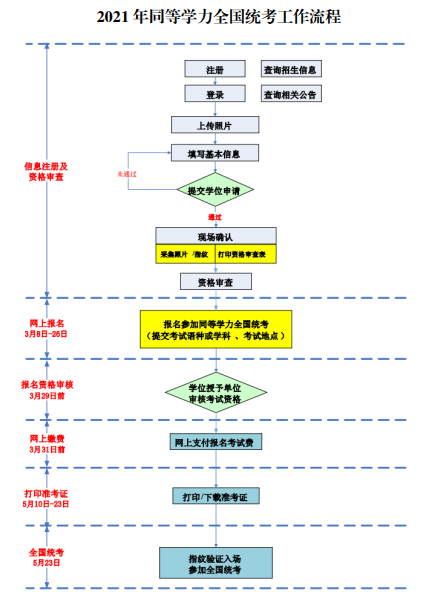 2021年同等學(xué)力全國統(tǒng)考工作流程