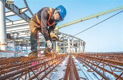 2021年2月20日, 海南省??趪H免稅城項目工地的建設者們加緊施工。袁 琛攝(人民圖片)