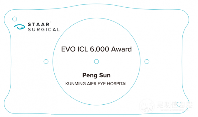 會(huì)診當(dāng)天,ICL晶體生產(chǎn)廠(chǎng)商瑞士STAAR公司大中華區(qū)戰(zhàn)略集團(tuán)客戶(hù)全國(guó)銷(xiāo)售經(jīng)理王勇先生將“ICL手術(shù)量突破6000例”大獎(jiǎng)授予孫鵬。據(jù)ICL廠(chǎng)家瑞士STAAR公司統(tǒng)計(jì),今年以來(lái),孫鵬的ICL手術(shù)量位居全國(guó)前十,云南第一,已突破6000例,可以說(shuō)孫鵬是云南地區(qū)ICL晶體植入術(shù)專(zhuān)家中最受近視患者信賴(lài)的一位。而據(jù)悉,自2015年開(kāi)始,愛(ài)爾眼科醫(yī)院集團(tuán)也已連續(xù)6年榮獲“全球ICL手術(shù)量第一”榮譽(yù),昆明愛(ài)爾眼科醫(yī)院還是全國(guó)十大ICL卓越中心,云南僅此一家。