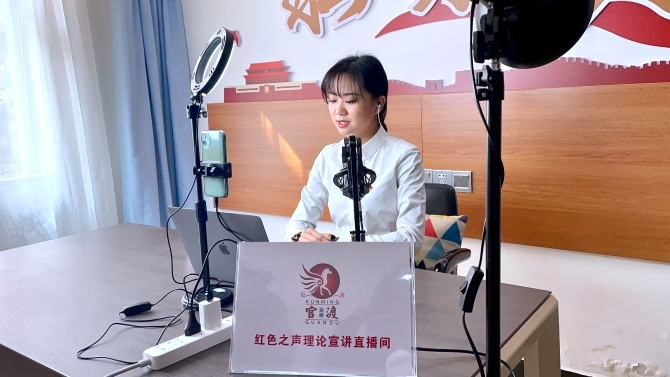 官渡區(qū)牢牢抓住青年人這個學習和宣講的重點,組建一只表達能力佳、感染力強、素質(zhì)過硬,以青年人為主的直播宣講隊伍?;卦谔暨x直播宣講員時,把黨員身份作為首要條件,從全區(qū)100多名優(yōu)秀青年中層層選拔出27名組建成“紅色之聲”網(wǎng)紅正能量宣講隊伍,包含有國企青年黨員、優(yōu)秀創(chuàng)業(yè)青年、社區(qū)基層干部、正能量網(wǎng)紅主播等,他們善于用年輕人喜歡的視角和表達方式,讓理論宣講更接地氣、讓學習黨史更有朝氣。