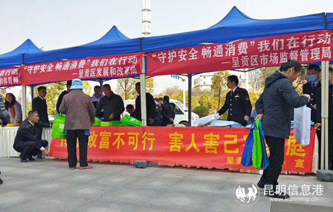 本次宣傳周活動由省市場監(jiān)管局、省消費者協(xié)會及昆明市市場監(jiān)管局、市消費者協(xié)會主辦,呈貢區(qū)人民政府、呈貢區(qū)市場監(jiān)管局、區(qū)消費者協(xié)會承辦。參與單位還包括呈貢區(qū)發(fā)展改革局、商務和投資促進局、文化和旅游局、煙草專賣局、金融辦等10多個職能部門。