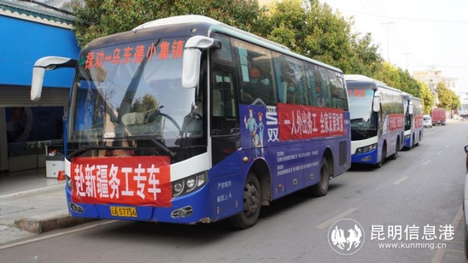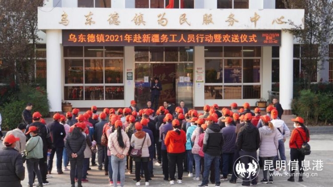 昆明信息港訊 記者段佳琪 3月9日,昆明市祿勸縣烏東德鎮(zhèn)舉行“2021年第一批赴新疆務(wù)工歡送儀式”,114名老鄉(xiāng)從烏東德鎮(zhèn)出發(fā),前往新疆務(wù)工。