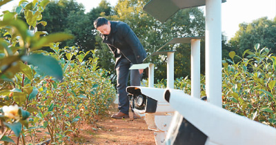 茶園中用來監(jiān)測(cè)病蟲害的攝像頭。新華社記者 林超攝