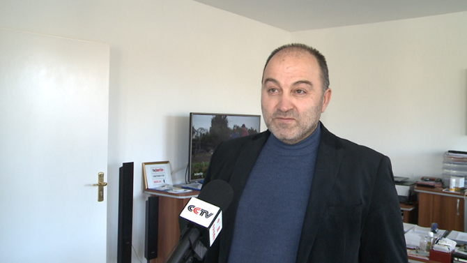 △柏林電視臺(tái)董事長(zhǎng)杜爾松·伊亦特接受總臺(tái)記者采訪
