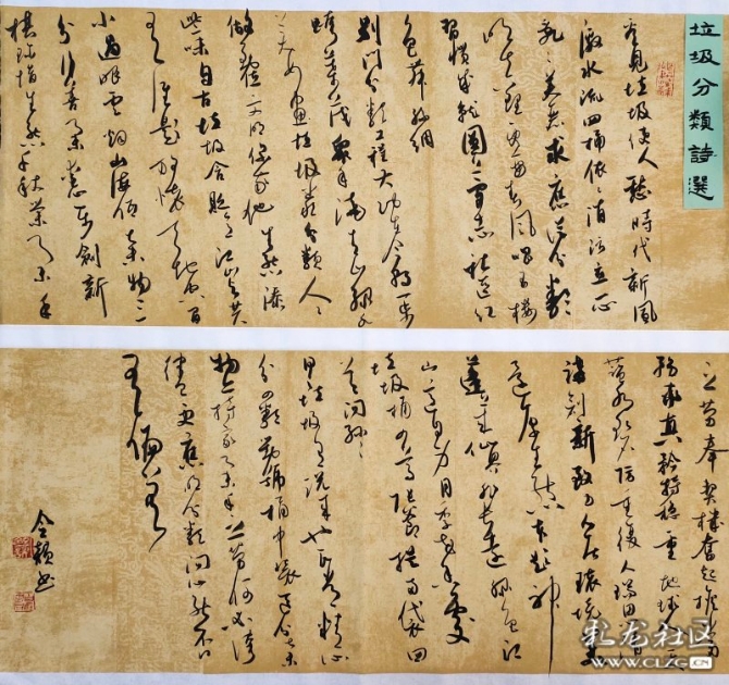 用小行草創(chuàng)作了幾首有關(guān)垃圾分類的古詩(shī)的書法作品。