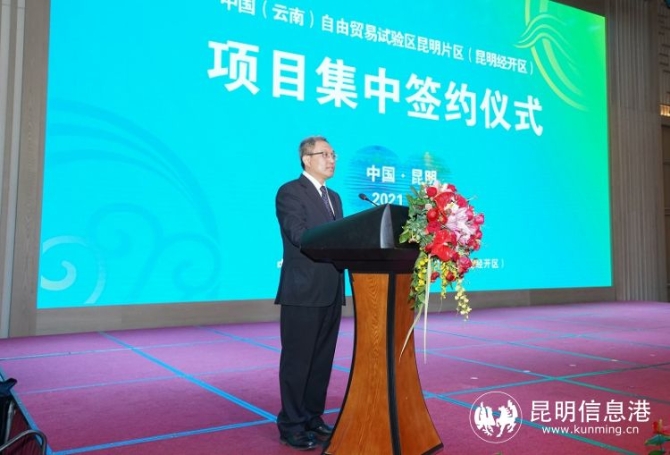昆明信息港訊 記者高菁徽 通訊員馮靖凱 3月10日,中國(云南)自由貿(mào)易試驗(yàn)區(qū)昆明片區(qū)(昆明經(jīng)開區(qū))舉行2021年集中簽約儀式,43個重點(diǎn)項(xiàng)目進(jìn)行了集中簽約,總投資逾95億元人民幣,其中,外資1億美元,內(nèi)資88.6億元人民幣。