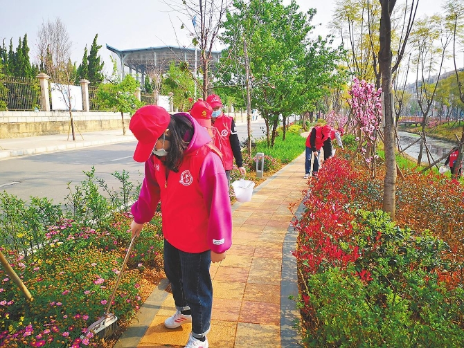 江川區(qū)500余名志愿者兵分幾路,在星云湖沿岸和主城區(qū)開展志愿服務(wù)活動(dòng)。 本報(bào)記者 何蕾 攝