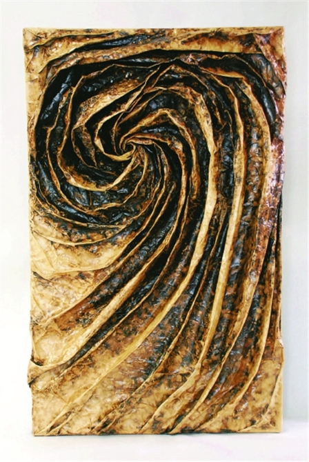 正因?yàn)閷?duì)手工制紙工藝了如指掌,她的白色系列作品《情肌·理緒》,以造紙工藝體現(xiàn)出不同肌理,切換不同燈光,讓人在觸摸時(shí)感知各種情緒,入圍第八屆國(guó)際纖維藝術(shù)雙年展。黑色系列作品中,《木之歌》表達(dá)的是她對(duì)紙張本身的理解與想象,《34平方米》隱喻34歲是人生開啟另一扇門的時(shí)候,而在大腦完全放空狀態(tài)下創(chuàng)作的《日出》則成為懸掛在工作室中,供金繡辰和朋友鑒賞的減壓作品。