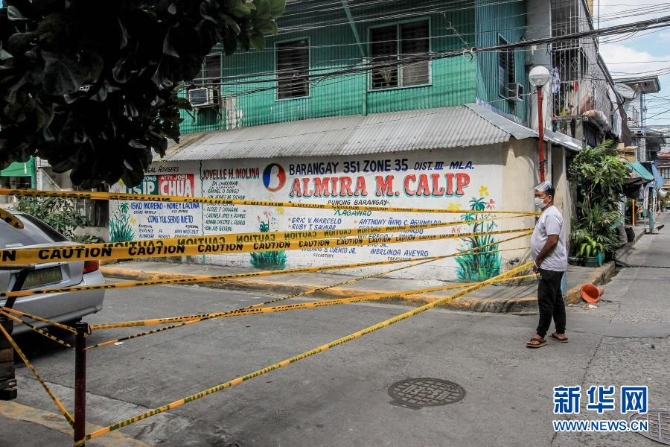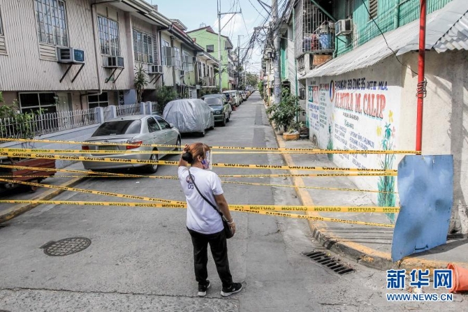 3月11日,一名居民站在菲律賓馬尼拉一處封鎖的街道旁。新華社發(fā)(烏馬利攝)