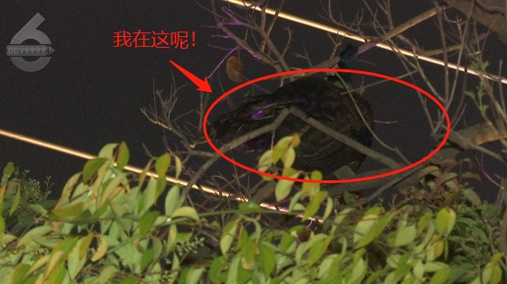 晚上7點半,記者來到圓通大橋濱江西路,只見一只孔雀停在樹梢上,一動不動,由于天色已暗,不仔細(xì)看根本就發(fā)現(xiàn)不了這個小家伙。