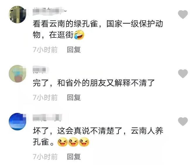 3月12日,昆明一市民發(fā)現(xiàn)一只孔雀在圓通大橋附近散步,之后還飛上了一堵圍墻。到了傍晚,熱心市民又在濱江西路附近看到兩只孔雀飛上了樹梢。因為擔(dān)心孔雀受傷,她聯(lián)系了記者求助。