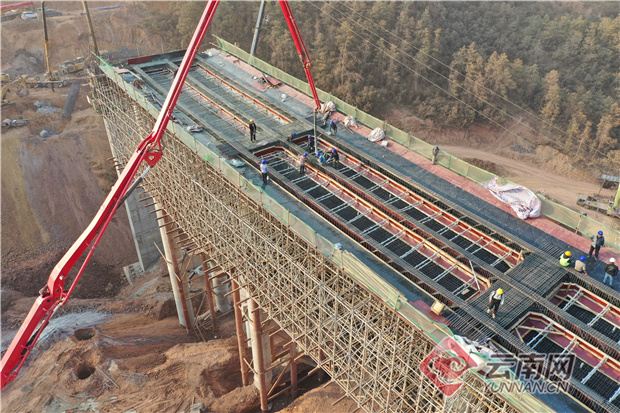 此次澆筑的渾水海樞紐互通HK1+446匝道橋第一聯(lián)現(xiàn)澆箱梁,設(shè)計(jì)長(zhǎng)度100米,梁高1.4米,混凝土設(shè)計(jì)方量712方。為確保首聯(lián)現(xiàn)澆箱梁成功澆筑,澆筑前,云南省交通投資集團(tuán)協(xié)調(diào)各方力量,調(diào)集技術(shù)力量對(duì)澆筑方案認(rèn)真檢查、推算,克服日間高峰期、夜間視線差、占道交通堵塞等不利因素,對(duì)施工工序及安全防護(hù)進(jìn)行詳細(xì)安排,落實(shí)現(xiàn)場(chǎng)施工人員技術(shù)交底工作?! ?nbsp;