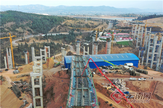 3月14日下午13時(shí),隨著兩臺(tái)泵車(chē)將混凝土徐徐送入模,云南省在建最大高速公路樞紐立交工程——賓南高速公路渾水海樞紐立交首聯(lián)現(xiàn)澆箱梁正式開(kāi)始澆筑,標(biāo)志著項(xiàng)目進(jìn)入了會(huì)戰(zhàn)關(guān)鍵時(shí)刻。
