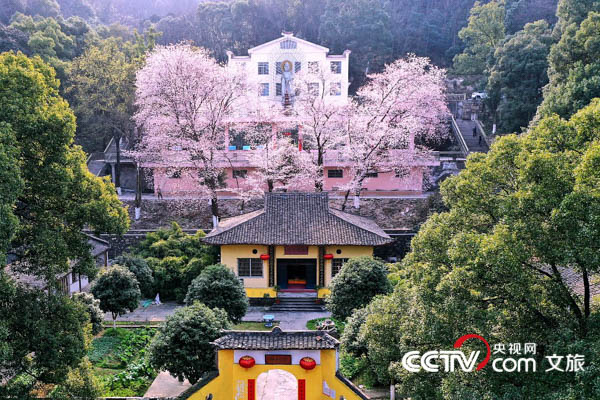方竹寺數(shù)株古櫻樹位于廬山北山山麓,距今已有300多年歷史,溫潤的局地氣候讓它比牯嶺花木提前綻放,往年一般3月份開花,花期十來天,可謂廬山百花齊放“春之先聲”的代表景色。今年氣候偏暖,2月中旬就開花,花期提前了1個月。幾株大櫻花樹長在廬山腰,與周邊綠樹掩映成趣,微風(fēng)吹過,櫻花雨飄落而下。