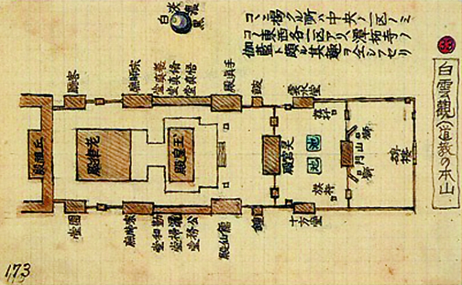 伊東忠太的筆記忠實記錄了中國古建筑的原始風貌,為文物的修復提供了相當重要的參考。以北京的白云觀為例,筆記中表明,他是在1902年5月28日考察的這座道教祖庭,他在文字記載中講述了中國的道觀與佛教寺院在布局、樣式與殿堂各方面的不同之處。最為重要的是,在考察筆記中有一幅伊東忠太手繪的白云觀山門圖,清朝末年白云觀的山門上有“跪諷皇經(jīng),祝國浴民,叩天祈雨”的字樣,現(xiàn)代白云觀已經(jīng)沒有這些字了。