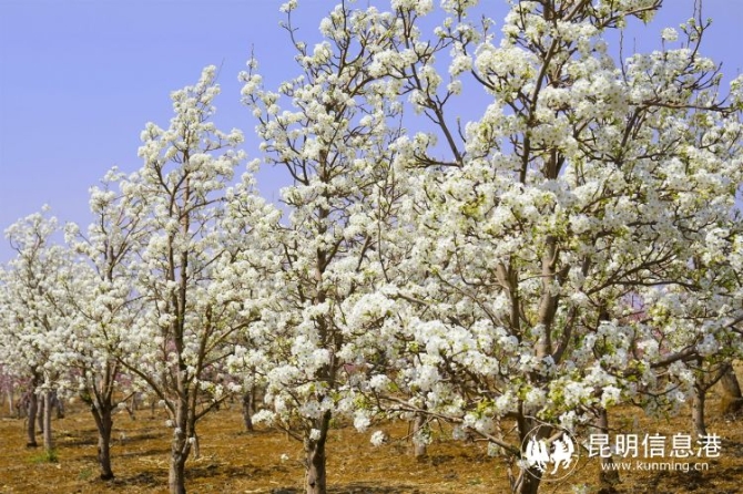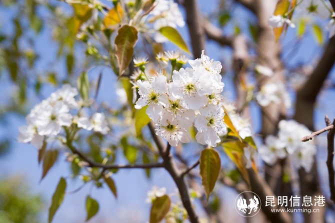 在昆明呈貢,萬溪沖的梨花盛開,風(fēng)搖樹擺,珊珊可愛。那一串一串細(xì)碎輕柔的白色的小花,一直開到樹頂,錯落有致,是難得的冰清玉潔。