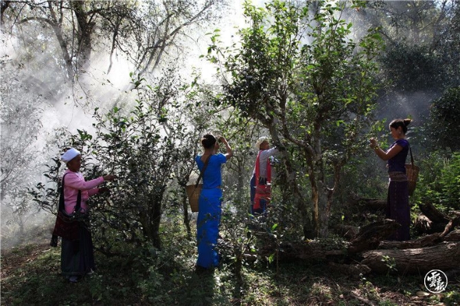 古茶林中的樹(shù)木根部有一塊木牌,上面寫(xiě)著樹(shù)木名稱、產(chǎn)地和用途。有些古茶樹(shù)上的木牌詳細(xì)記載了古茶樹(shù)的樹(shù)徑、樹(shù)冠、樹(shù)齡等詳細(xì)信息,還有養(yǎng)護(hù)責(zé)任人名字。每一片古茶林中都有一間破舊低矮的木板房,那是村民們上山采茶時(shí)晾曬茶葉和休息的地方。村民每年采茶二至三次,古樹(shù)茶成為景邁山當(dāng)?shù)囟嗝褡迦罕娭赂坏慕鹑~子。曾斌說(shuō):“等4月發(fā)春芽時(shí),老百姓采春茶,加工后每公斤能賣1200元到3000元。”