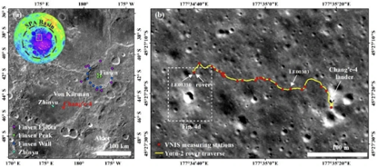 “ 嫦娥四號”著陸區(qū)地質(zhì)背景圖以及“ 玉兔二號”前13月晝巡視路線圖