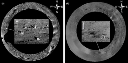 “玉兔二號”月球獲取的全景影像鑲嵌圖:第3月晝(左)和第13月晝 (右)