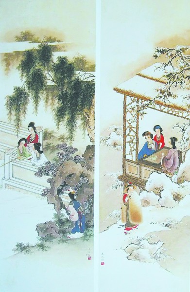 紅樓人物畫:寶玉促狹(左),寶玉踏雪(右) 王叔暉繪