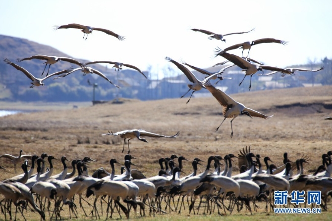 Rare black-necked cranes wintering in Yunnan’s Zhaotong