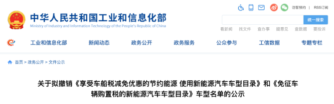 3月23日,工信部公示了擬撤銷《享受車船稅減免優(yōu)惠的節(jié)約能源使用新能源汽車車型目錄》和《免征車輛購置稅的新能源汽車車型目錄》車型名單,涉及比亞迪e5和e6、理想ONE LXA6500SHEVM1等汽車型號(hào)。