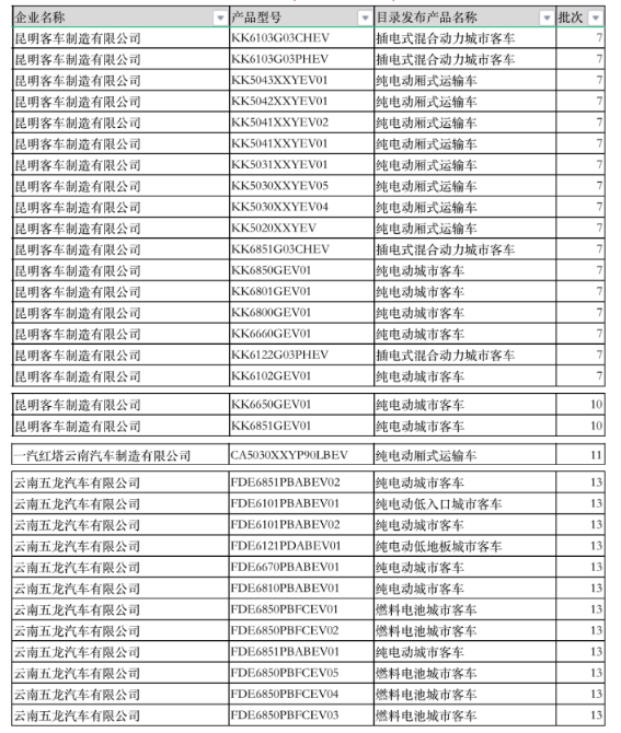 擬撤銷《享受車船稅減免優(yōu)惠的節(jié)約能源使用新能源汽車車型目錄》的車型名單(云南企業(yè)部分)