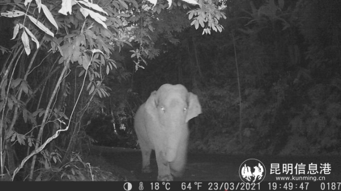 據(jù)景區(qū)工作人員介紹,3月23日早晨發(fā)現(xiàn)亞洲象活動的跡象,現(xiàn)場有被大象踩踏的植被、大象糞便以及被破壞的鐵門等明顯活動痕跡。工作人員通過對景區(qū)監(jiān)控的查看以及對現(xiàn)場痕跡的勘查后推斷,此次進入景區(qū)的野生亞洲象為獨象,并非象群。為進一步監(jiān)控該象的活動范圍,工作人員及時在景區(qū)中布置了紅外相機,并對現(xiàn)有的監(jiān)控范圍做出了調(diào)整。23日晚間19時21分,紅外相機及監(jiān)控錄像設(shè)備拍攝到了該亞洲象的清晰影像。
