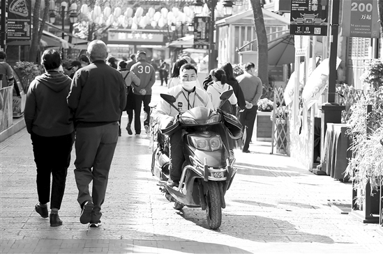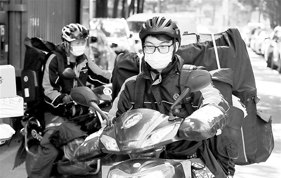 記者采訪的數(shù)十名外賣小哥均表示,月薪未超過5000元。(記者李賽 實習生徐旖敏)