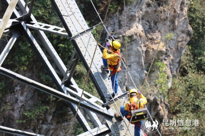 由于滇南地區(qū)雨季來(lái)臨較早,防洪準(zhǔn)備工作必須趕早做足。頭一天已經(jīng)申請(qǐng)了天窗點(diǎn)外計(jì)劃,23日上午,中國(guó)鐵路昆明局集團(tuán)公司開(kāi)遠(yuǎn)工務(wù)段開(kāi)遠(yuǎn)橋路車(chē)間主任陶學(xué)剛帶領(lǐng)灣塘橋隧工區(qū)11名職工,計(jì)劃對(duì)人字橋進(jìn)行汛前隱患排查。