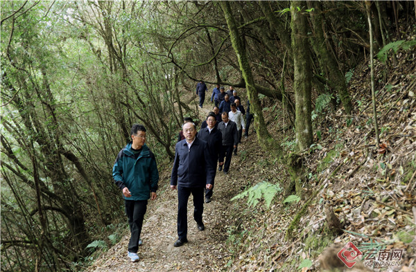 阮成發(fā)、王予波一行深入高黎貢山國家級自然保護(hù)區(qū)高黎貢山古道公園調(diào)研。記者 周燦 攝