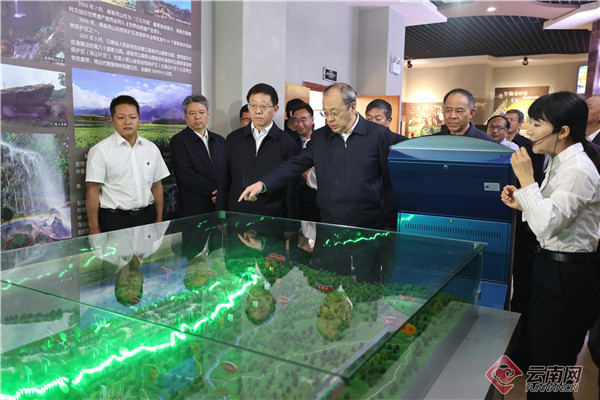 阮成發(fā)、王予波一行在高黎貢山國家級自然保護(hù)區(qū)高黎貢山宣教中心調(diào)研。記者 周燦 攝