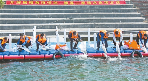 為保護丹江口庫區(qū)生態(tài),2020年相關(guān)部門聯(lián)合開展魚類增殖放流活動,將162.5萬尾魚苗放入丹江口庫區(qū)。(資料圖片)