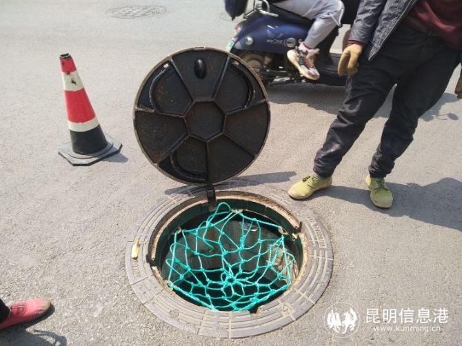 目前,施工人員正在給窨井安裝防護網(wǎng),他們介紹,這個網(wǎng)是裝在井蓋下面的窨井扣子上,尼龍材質,很結實,主要是防止鐵質井蓋被破壞或者挪走后人或物落入井內(nèi)。在雨季,這個網(wǎng)也可以起到濾網(wǎng)作用,防止枯枝敗葉大量進入窨井造成堵塞。