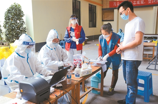 “我們從凌晨6時(shí)左右開始進(jìn)行核酸檢測(cè),原來要用3天檢測(cè)完,這次只用了12個(gè)小時(shí)便檢測(cè)完?!臂旅?zhèn)興安社區(qū)黨總支書記周全國(guó)說,接到全員核酸檢測(cè)的通知后,社區(qū)立即行動(dòng),設(shè)置了11個(gè)檢測(cè)點(diǎn),33名醫(yī)生6時(shí)許到位開始采樣。到記者發(fā)稿時(shí),小區(qū)共采集樣本7517人,95%以上的人員都進(jìn)行了采樣。