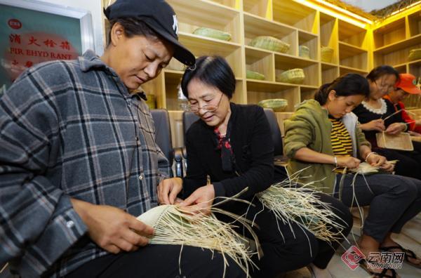 福貢縣匹河怒族鄉(xiāng)托坪村扶貧車間里,搬遷群眾正在接受草果編織培訓(xùn),在這里草果桿被做成草帽、手包、拖鞋…… 謝宇/攝