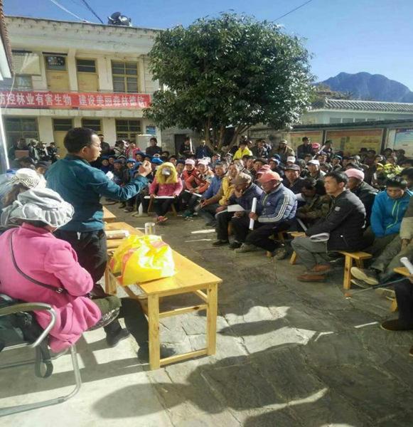 普法宣傳中,龍新文利用自己會(huì)講漢語、藏語、傈僳語的優(yōu)勢,用不同民族語言與村民溝通交流。面對(duì)學(xué)齡前兒童和老年人,他用藏語和傈僳語交流,面對(duì)中青年和外來人員,他用漢語溝通,到了田間地頭、山林溝壑邊,又用村民聽得懂的語言普法。講解法律法規(guī)時(shí),為讓村民們聽得懂,他穿插一些案例,以案釋法。