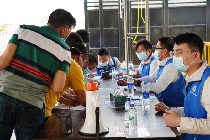 中國港灣公司科倫坡房建項目商務(wù)部經(jīng)理鄭斌就是“藍馬甲”服務(wù)隊一員,承擔(dān)著現(xiàn)場后勤總協(xié)調(diào)的任務(wù)。他告訴記者,科倫坡接種點就設(shè)在中國港灣的一個營區(qū),企業(yè)接到任務(wù)后在一周內(nèi)便完成了從設(shè)計、籌劃、改造、運營和正式投入使用的全過程。