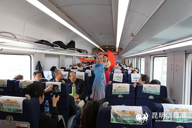 列車上,昆明局集團(tuán)昆明客運(yùn)段的金花列車員與交通廳黨員開展黨史知識(shí)競賽、講述黨史故事、齊唱紅歌、“十送紅軍”舞蹈表演等活動(dòng),進(jìn)一步激發(fā)大家學(xué)習(xí)黨史的熱情。