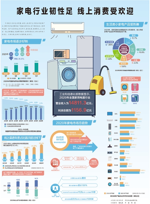 作為提升居家生活質(zhì)量、滿足人民美好生活需求的重要產(chǎn)品,2020年家電消費(fèi)經(jīng)歷了整體先抑后揚(yáng)、線下零售向線上轉(zhuǎn)移等過(guò)程。在產(chǎn)品供給端,新品種多、新功能強(qiáng)、新趨勢(shì)足,讓人眼前一亮;在營(yíng)銷端,直播帶貨盛行、社群營(yíng)銷走俏,給行業(yè)帶來(lái)了新動(dòng)力。總體來(lái)看,家電行業(yè)韌性強(qiáng)、活力足。(經(jīng)濟(jì)日?qǐng)?bào)-中國(guó)經(jīng)濟(jì)網(wǎng))
