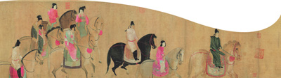 《虢國夫人游春圖》(局部),傳為唐代張萱繪制,原作已佚,現(xiàn)存的是宋代摹本,藏于遼寧省博物館。畫中男女騎從八人行進狀,服飾輕薄而鮮明。遼寧省博物館供圖