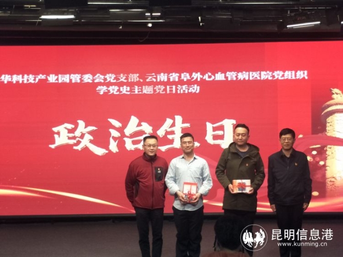 為更好地鞏固黨員的黨史理論知識,繼承和發(fā)揚黨的優(yōu)良傳統(tǒng)和優(yōu)良作風(fēng),現(xiàn)場還組織了黨史競猜活動,進一步激發(fā)廣大黨員愛黨、愛國的熱情,踐行初心使命。在五華科技產(chǎn)業(yè)園黨工委副書記、管委會主任趙志良同志的帶領(lǐng)下,全體黨員重溫了入黨誓詞。同時,活動還為2名黨員過“政治生日”,送上生日賀卡和特殊的“生日禮物”――《中國共產(chǎn)黨簡史》。