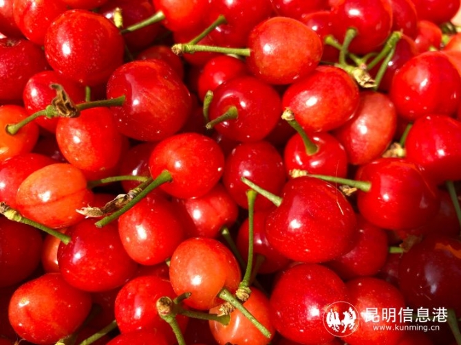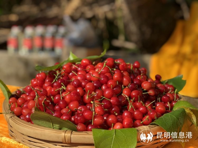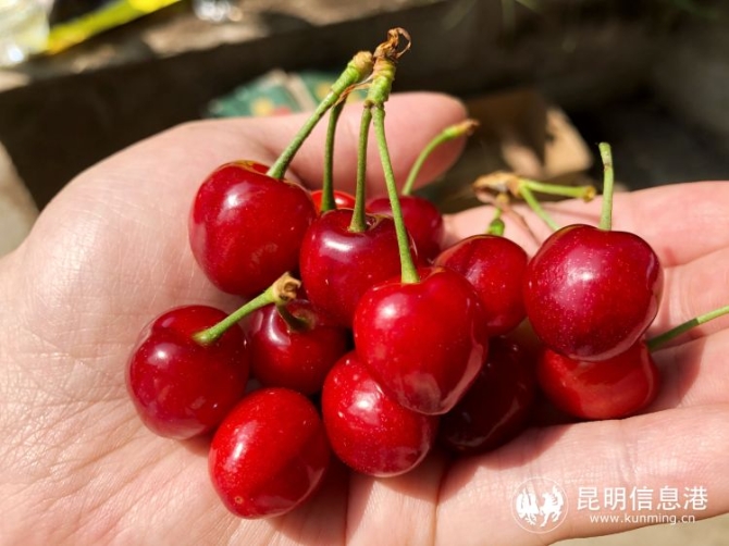 昆明信息港訊 記者李瑩 “斜日庭前風(fēng)裊裊,碧油千片漏紅珠?!贝汗饷髅?正是吃櫻桃的好時節(jié)。昆明宜良縣北古城鎮(zhèn)米戶村近萬畝櫻桃已經(jīng)鮮紅掛果等待游客品嘗。據(jù)悉,在米戶不僅可以品嘗到全市少見的“紅瑪瑙”櫻桃,且價格實惠:入園游玩免入園費,鮮果售價每公斤20元左右。