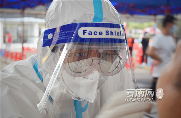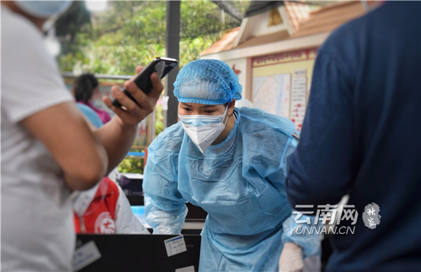 當(dāng)天上午,記者在瑞麗市勐卯鎮(zhèn)卯相社區(qū)核酸檢測(cè)采樣現(xiàn)場(chǎng)看到,這里設(shè)置了5個(gè)核酸檢測(cè)采樣點(diǎn),醫(yī)務(wù)人員正忙著為居民進(jìn)行核酸采樣。采樣通道設(shè)置井然有序,居民相互間隔1米有序排隊(duì),身穿紅色馬甲的志愿者現(xiàn)場(chǎng)維持秩序、測(cè)量體溫等。